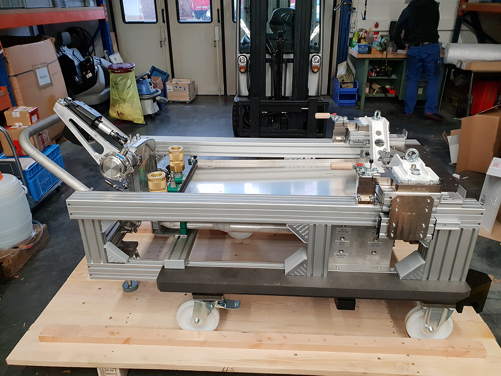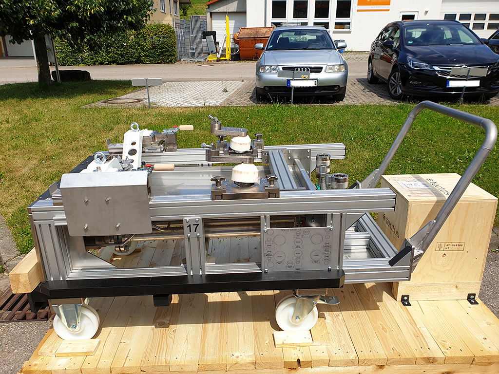 Von HS gefertigte Transportsysteme und Trolleys dienen dem sicheren Transport von Prüflingen und Motoren und kommen in Montage- und Rüstbereichen von Prüfständen zum Einsatz.